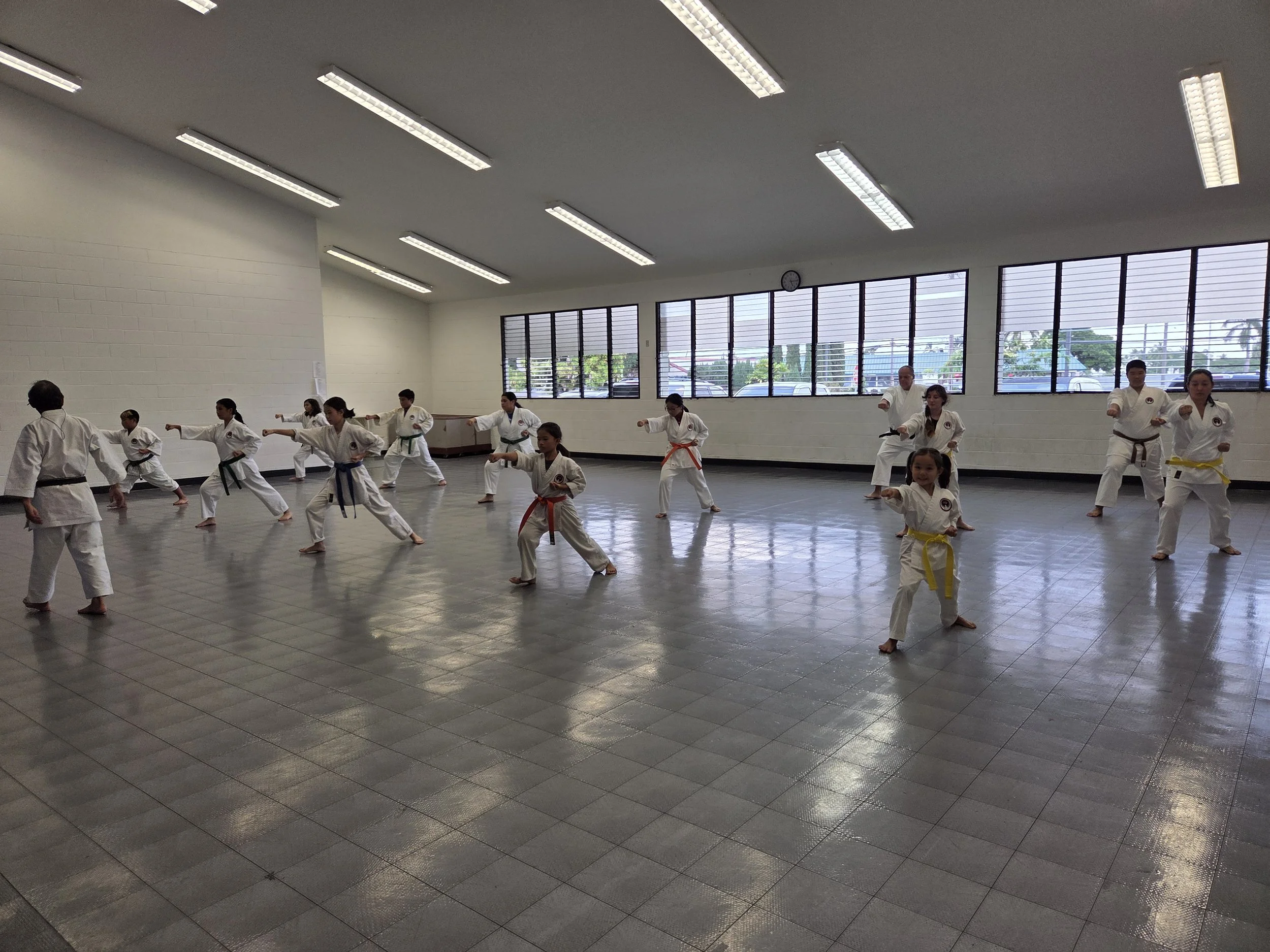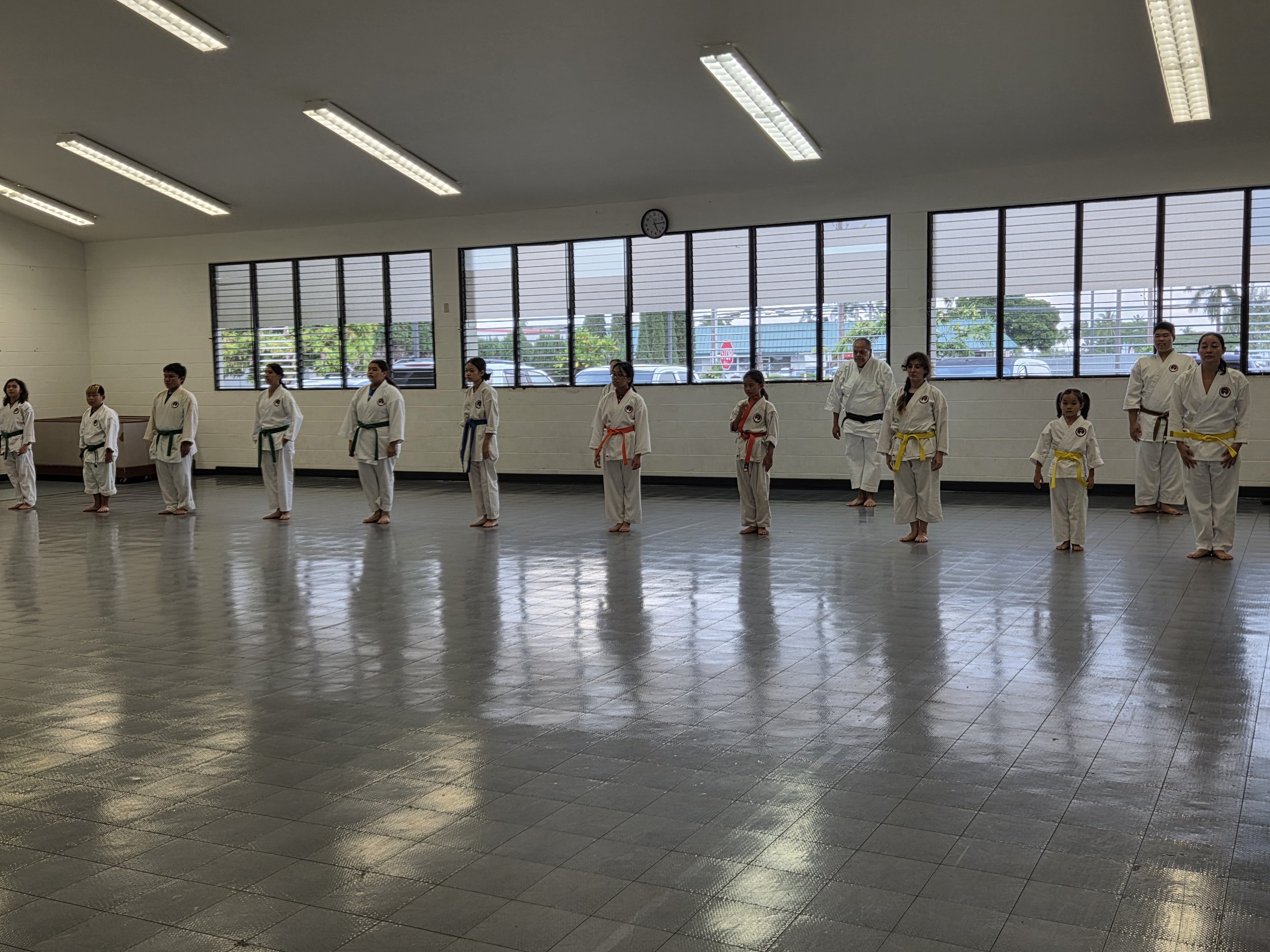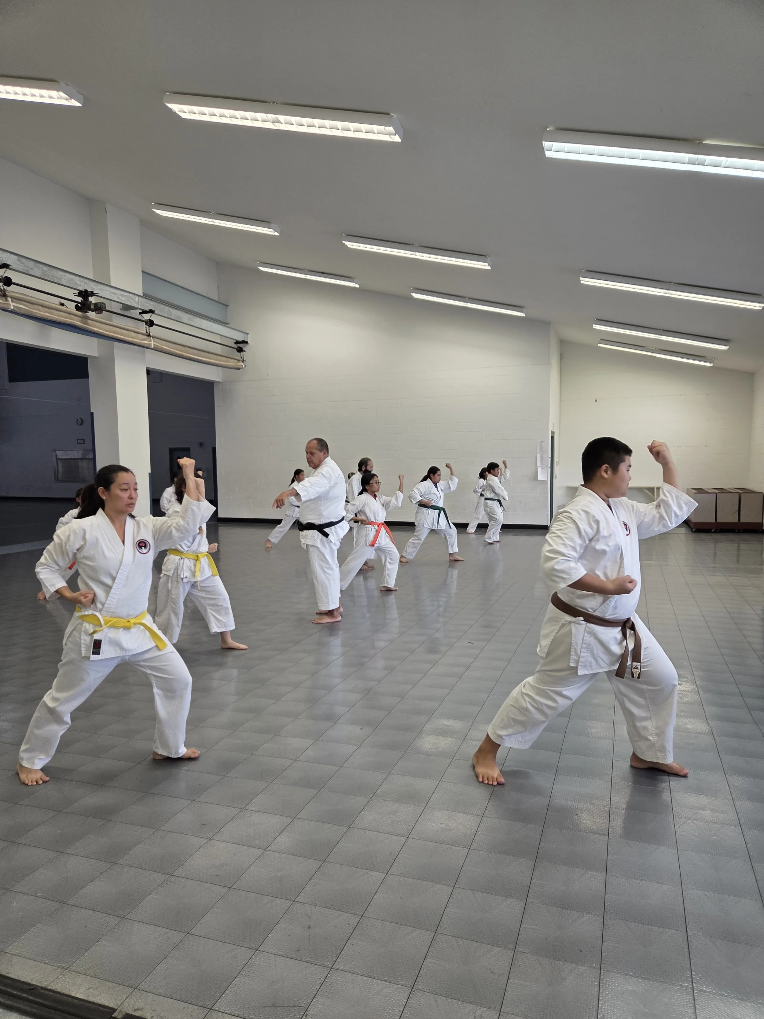 Stretching exercises before training starts Showing Respect to our Founder, Sensei and Class Basics Training Kumite (Sparring) Practice