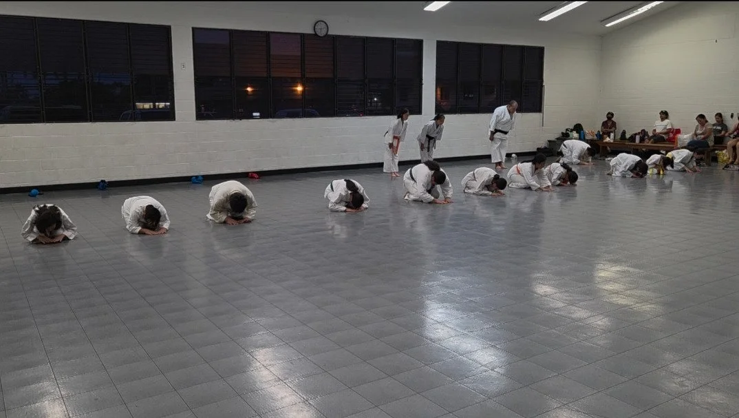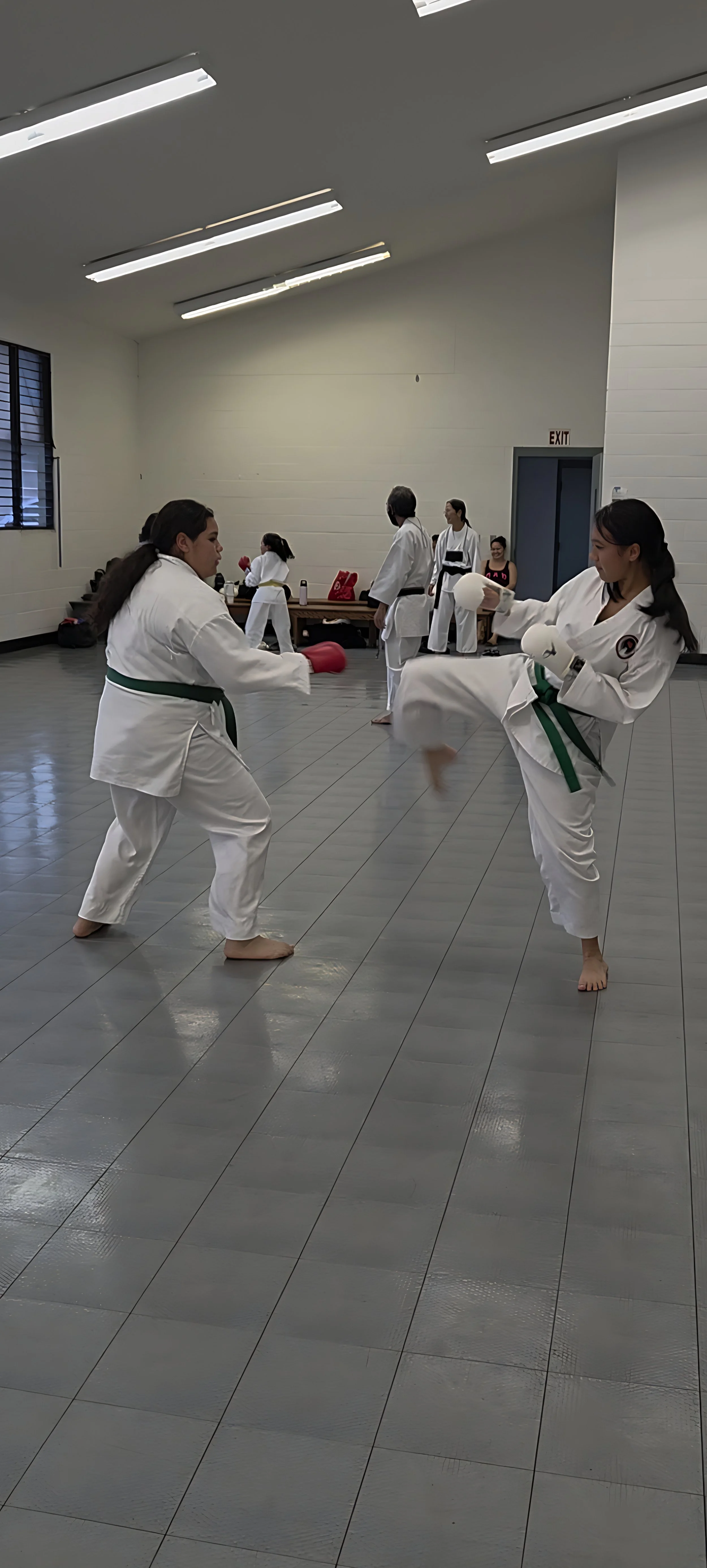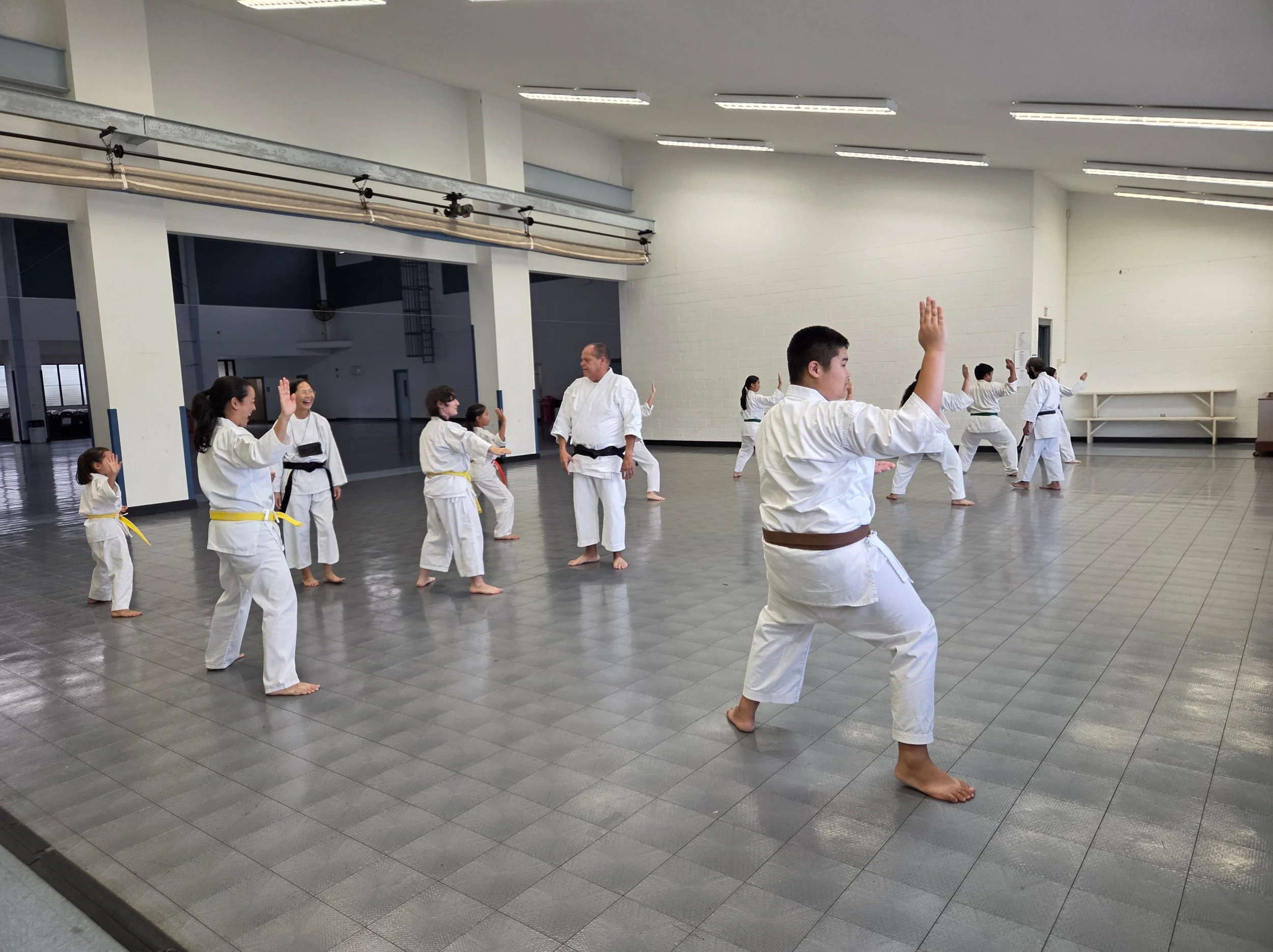 Stretching exercises before training starts Showing Respect to our Founder, Sensei and Class Basics Training Kumite (Sparring) Practice